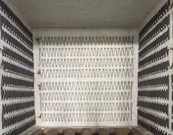 RT2系列全纖維臺車式電阻爐是標準周期式作業爐,CJN結構,采用纖維結構,節電60%,采用復合式高鋁瓷釘組,臺車防撞擊密封磚,自動密封臺車和爐門,一體化連軌,不需基礎安裝,放在水平地面即可使用。全纖維臺車式電阻爐主要用于高鉻、高錳鋼鑄件、球墨鑄鐵、軋輥、鋼球、45鋼、不銹鋼等淬火、退火、時效以及各種機械零件熱處理之用。 臺車爐爐襯采用全纖維結構以保證模塊在砌筑完畢后,每塊陶瓷纖維塊在不同方向膨脹,使模塊之間互擠成無間隙的整體,達到完好蓄熱效果,而且該產品施工方便快捷,均能直接固定于爐殼 鋼板的不銹鋼錨圓釘上。 加熱元件采用高溫電阻合金絲繞制成帶狀和螺旋狀,分別吊掛在爐側、爐門、后墻及安放臺車擱絲磚上,并用高鋁瓷釘固定,安全簡潔。 臺車上按裝有耐壓抗高溫的鑄鋼爐底板,以承載工件之用。為了防止工件加熱后產生的氧化皮通過爐底板間 的縫隙落入加熱元件周圍而造成加熱元件損壞,因此爐底板與爐體接觸處采用插入式接觸。 爐門裝置由爐門、爐門提升機構和爐門壓緊裝置組成。 臺車框架采用型鋼焊接成形,其鋼性保證在滿負荷下不變形。內用耐火磚砌筑,易碰撞部位和承重部位用重 質磚砌筑,增強爐襯結構強度,臺車的行走采用自行式結構,由減速機傳動鏈輪帶動走輪在軌道上行走。 臺車密 封采用自動迷宮式結構和軟接觸雙密封,臺車進入爐內通過凸輪及滾輪斜面作用,自動升起后進行密封。 為了縮短冷卻工藝時間,爐頂可設有加快冷卻用排氣裝置。該裝置加熱時關閉,冷卻到一定溫度打開、關閉 打開操作由操作人員在爐子一側通過手動機構或自動控制來完成。